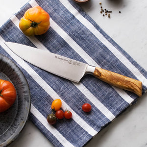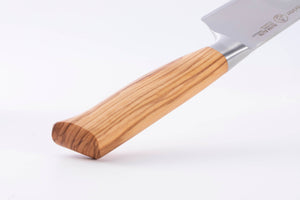 The Messermeister Oliva Elite Stealth 8" Chef’s Knife is the workhorse of all the knives. You will gravitate towards it when executing 90% of your culinary tasks. It has a highly figured Italian olive wood handle attached to a hand forged Stealth blade and is about 25% thinner and 10% lighter than our traditional chef’s knife. It has been ground down to a thin profile to create a razor sharp edge. With this knife, you can chop, slice, dice and mince your way through extended cutting tasks without fatigue.